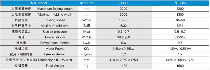 折疊機(床單折疊機)系列技術(shù)參數(shù)(Main Technical specifications)